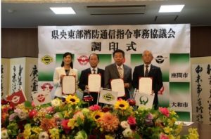 「県央東部消防通信指令事務協議会協議書」の調印式を開催しました。
