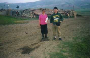世界最大の油田都市に数えられる、カスピ海沿岸の大都市旧ロシアのアゼルバイジャンの首都バクーの歴史ある少し古びたカスピ海のに面したホテル・アゼルバイジャンで目を覚ます。時計を見ると朝の3時30分、窓の外はまだ真っ暗、AM4:00ホテルのロビーからのモーニングコール、かばんをまとめホテルのロビーに、そこでは僕を330km離れたグルジアとの国境まで僕を運んでくれる、ホテルで働いているとても親しみやすいエノラさんが、待っていた。彼の決して高級車とはいえない黒塗りのポンコツ車でグルジアを目指した。AM5:00車の窓の外の景色は明るくなり、地図を開くと北は、紛争でみだれるグロズヌイユを首都とするチェチェン共和国、南は、1990年からアルメニアとの領土紛争が行われ今も緊迫の状態が続くナゴールニ・カラバク地区のすぐ北を横切っている。道路は炎上した跡の車が放置される姿も、そんな景色が過ぎ去り眼下には、なだらかの丘の向こうにカフカス山脈、そして難民の移住区がポツリ、ポツリと現れてきた、そこでの食生活を拝見するため、遊牧民の現代社会からかけ離れた生活を覗いて見た。