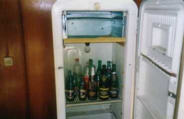 ホテルのロビーにある冷蔵庫を空けるとワインの空瓶が、おまけに冷蔵庫は電気が入っていない(これがグルジア)
