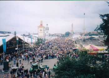 A: とりあえず、ポケットに5マルク(300円)をいれ、駅構内にある、ビール屋台に飛び込もう。そして、そこで1杯、ほろ酔い気分になったところで、オクトオバー・フェストの会場に向かおう。駅正面を出て南(右)に進路を取り3分、交差点で右を見て、大きな教会が見えたらその教会めがけて右折、そのときガイドブックに書いてある地下鉄を使い現地に向かうと書いてあるが、それはやめよう、なるべく日のあたる表通りを歩こう、地下鉄を使うほどの距離ではない。日本人の行けない事はマニュアルどおり行動する事であり、それは、時には裏目に出ることがよくある。