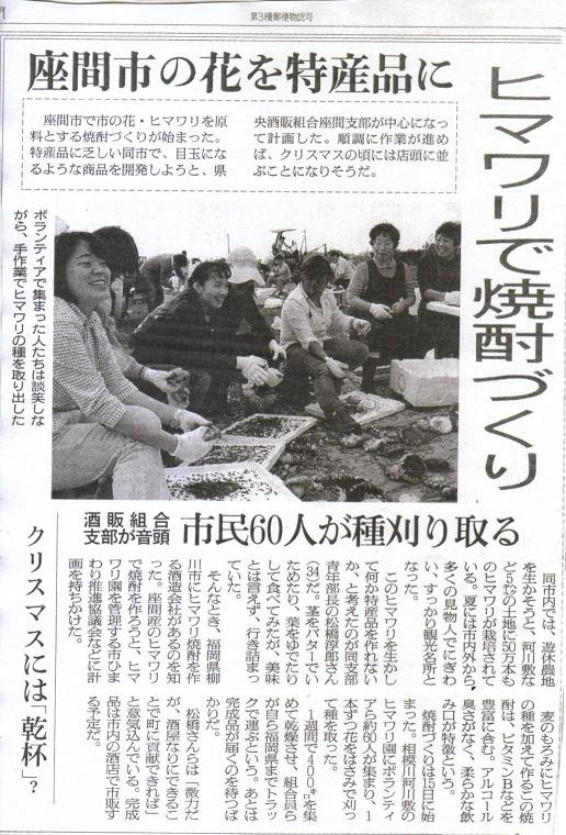 感謝のひと言 種の収穫に集まっていただいた皆様 本当にありがとうございました。 夏が終わり ヒマワリの季節が終わり トンボが飛びはじめる 秋の訪れる時 ヒマワリ畑に 再び集まりましょう!! 皆様の一粒が 世の中を明るくする 焼酎になります (本当のボランティアの皆様ありがとうございました)