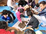ちなみに座間市では下写真のように手作業でふるいに掛ける。毎分約1〜2kgの作業能率。原点はこれだ!!