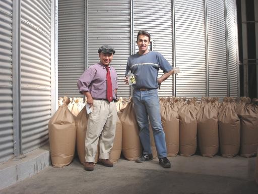 送風自動コンベーで乾燥されたヒマワリ種は、旧式の自動ふるいにて、種に含まれている、石や茎・ゴミを取り除く。毎分70kgの種がふるいに掛けられ、袋詰にされる。