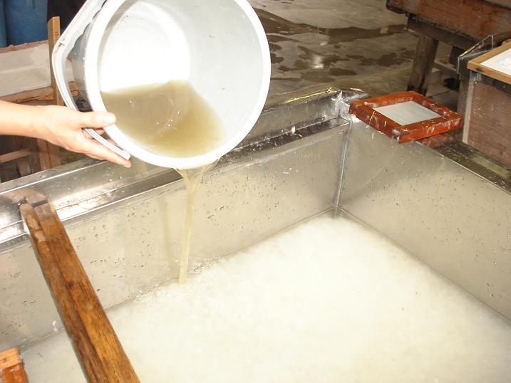 従来、高級和紙には原料に、コウゾ、みつまた、がんぴ、が使用される。最近の和紙はマニラ麻、パルプが配合物として使用されるが、小学生を相手にした和紙だから、牛乳パックを使おう! |