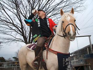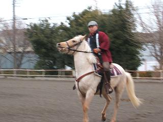 若干3歳、競馬G1にも出場できる年齢の、“ひまわ君”は、育ち盛りのまだ子供。 ある時は、噛み付かれ、ある時は、蹴飛ばされ、そして物音に驚き暴走をし振り落とされる命がけの調教は、雨にも、風にも負けず毎朝、座間の大地で日の出と同時に行われている。 |
