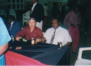 ギネス・ビール主催、ボディービル・コンテスト審査員席 (じゅんろう左、Mrチャンド右)