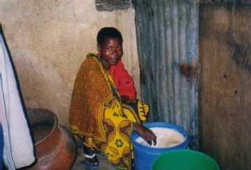 竹の子の樹液の発酵を調べるワヘヘ族の女性 (イリンガ村).