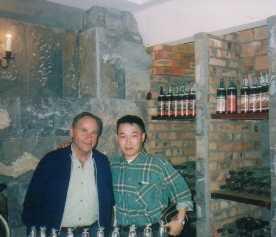 港町ヤルタにあるとても小さなワイン試飲場、熱心に観光客の少ないとても狭い地下のワイナリーで熱心にウクライナのワインを説明してくれたレオナード爺さん(左)、とジュンロウ