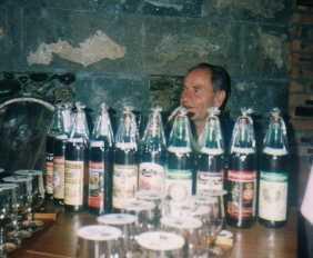 写真左に並べられた種類豊富なクリミアワインは、レオナード爺さんのワインの説明を聞きながら10種類すべて試飲ができる。