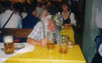 ビールの都ミューヘンでは季節によって異なるビールが醸造され楽しまれている、3月に飲まれるメルッビア、5月に飲む色の濃いいマイボック、そして9月に飲まれる色の濃いいコクのあるオクトーバーフェストビアがある、左写真の老人は、1リットル入るビール・ジョッキのオクトーバーフェストビアを飲み心地よく少年の頃の思い出を夢を見ているに違いない