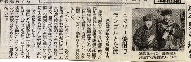 読売新聞 ヒマワリ焼酎 IN モンゴル