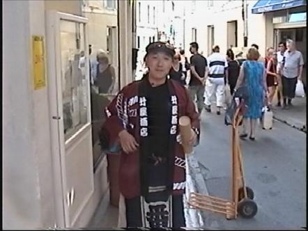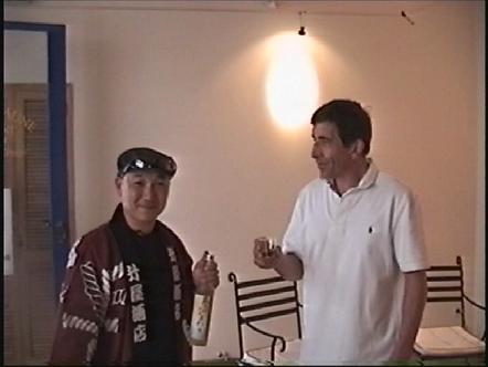 ワインにメチャ詳しい、ヴィノテーク・プロヴァンスのオーナー、ムッシュ・クロードさんに、座間のひまわりを原料に造ったひまわり焼酎の高級品、樽熟成“冬のひまわり”を試飲してもらい、ゲリラプロモーションを試みた。