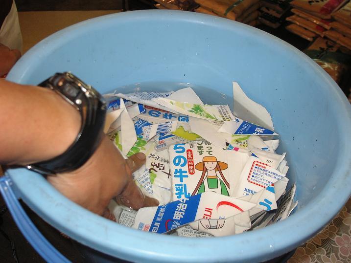 従来、高級和紙には原料に、コウゾ、みつまた、がんぴ、が使用される。最近の和紙はマニラ麻、パルプが配合物として使用されるが、小学生を相手にした和紙だから、牛乳パックを使おう! |